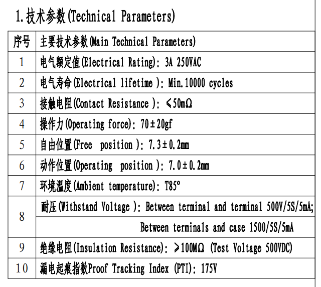 Parameter Micro Switch (Spesifikasi)